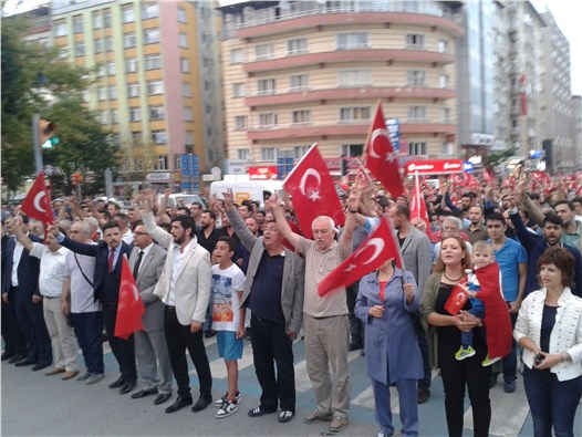 Kütahya Laleli Cami önünde toplanan vatandaşlar, ellerinde Türk bayraklarıyla yürüyüşe geçti. 'Kahrolsun PKK', 'Şehitler ölmez Vatan bölünmez' şeklinde slogan atan grup, Atatürk Bulvarı'ndan Zafer Meydanı'na kadar yürüdü. Şehitler için saygı duruşunda bulunan grup, İstiklal Marşı okudu. Ardından Ülkü Ocakları Başkanı Serdar Akkoç bir konuşma yaptı.