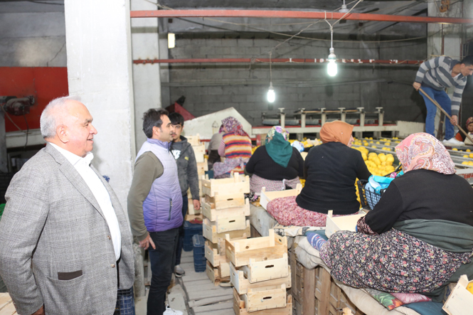Erdemlideki temel ekonomik faaliyetlerden biri olan tarım ürünlerinden limon için patent başvurusu yaparak, ilçe adına değer kazanması amacıyla çalışma yürüten Cumhur İttifakı Belediye Başkan Adayı Mükerrem Tollu, önceki günlerde kentin bel kemiğini oluşturan limon bahçelerini ziyaret ederek hasat sürecini değerlendirmişti. Bu gün de toplanan ürünlerin paketlenip satışa hazır hale getirildiği fabrika ve depoları gezen, limon işçileri ile bir araya gelerek sohbet eden Tollu, üreticinin meşakkatli yollardan geçerek yetiştirdiği ürünlerinin bereketli olmasını diledi. Ayrıca Tollu yaptığı değerlendirmede,“Bu kentte yaşayan insanlarımızın yaşam kalitesini yükseltmek adına ciddi bir gayretin içerisindeyiz. Önceliklerimiz, Erdemlimizin temel meselelerini çözmekti. Görev sahamıza girenlerin de %80-90 oranında çözülmesini sağladık. İlçemiz, tarım kenti ve tarımla uğraşan insanlarımızın ciddi bir gayret içerisinde olduğunun farkındayız. Bu yüzden tarım ürünlerinin sanayi ürünleri haline dönüştürülmesi için projelerimiz var. Bunlardan biri limonata fabrikası, bir diğeri ise tarım ürünlerimizin paketlenmesinde kullanılan plastik kasa fabrikası. Bu projeler istihdamı arttıracak ve Erdemlimizin ekonomik açıdan kalkınmasını sağlayacak. İnşallah ilçemizin, 31 Mart’tan sonra daha da müreffeh bir kent olabilmesi adına sizlerle birlikte el ele verip, gönül gönüle verip daha da iyisini yapacağız.”ifadelerine yer verdi.