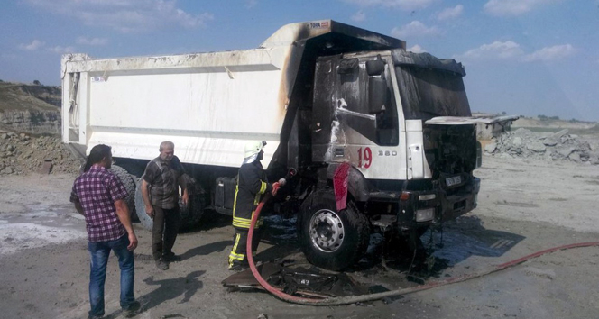 Malkara'daki bir maden ocağının hafriyat sahasında park edilen 34 TN 2357 plakalı hafriyat kamyonunda yangın çıktı. Yangın, motor bölümünde başladı ve kısa sürede kabin kısmını sardı. Olay yerine hızla ulaşan Tekirdağ Büyükşehir Belediyesi Malkara İtfaiye ekipleri, alevleri söndürmeyi başardı. Ancak, yangın nedeniyle kamyon kullanılamaz hale geldi.
