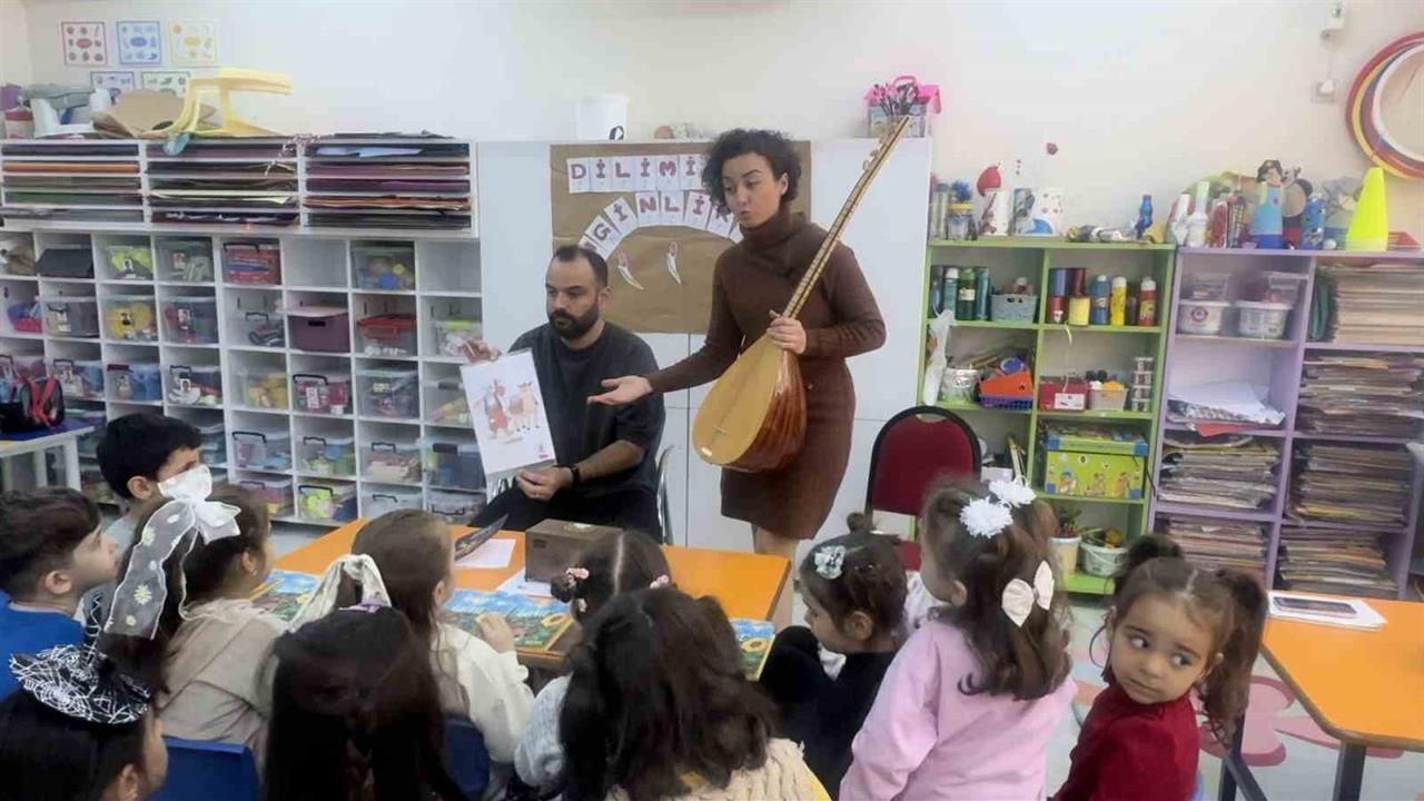 Akşemseddin Ortaokulu'nda gerçekleştirilen etkinlikte, Türkçe öğretmeni Halil Kuru, ana sınıfı öğrencilerine yazarlık serüvenini anlattı. Öğrencilerle yapılan söyleşide, kitapların ve dilin önemine vurgu yapıldı. Aynı zamanda okulun müzik öğretmeni Meltem Koruk, türküler seslendirerek etkinliğe müzikle renk kattı. Canlı müzik eşliğinde eğlenen öğrenciler, geleneksel ezgilerle kültürel değerleri tanıma fırsatı buldular. Etkinlikte Türk kültürünün önemli kahramanları olan Dede Korkut, Nasreddin Hoca, Keloğlan, Karagöz ve Hacivat tanıtıldı. Öğrenciler, bu karakterlerin temsil ettiği değerleri öğrenerek kültürel mirasları hakkında daha fazla bilgi sahibi oldular. Programın sonunda Halil Kuru, bu tür etkinliklerin çocuklarda dil bilincinin gelişimi ve kültürel farkındalığın artması açısından büyük önem taşıdığını belirtti. Minik öğrenciler, edebiyat ve kültürle dolu bir gün geçirerek unutulmaz anılar biriktirdi.
