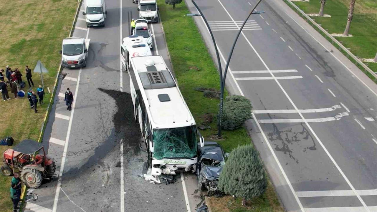 Kaza, saat 11.30 sıralarında İzmir-Manisa çevre yolu Saat Kulesi kavşağı Menemen Köprüsü girişinde yaşandı. Edinilen bilgilere göre, Batı Çevre Yolu'nda Akhisar yönüne seyreden D.K. (72) yönetimindeki 16 AFP 1** plakalı otomobil, aynı yönde sağ şeritte ilerleyen M.Y. (48) idaresindeki 45 ET 3** plakalı asfalt atığı yüklü traktöre çarptı. Çarpmanın etkisiyle savrularak sol şeride geçen otomobile, İ.E. (52) tarafından yönetilen 10 HF 1** plakalı Uludağ firmasına ait yolcu otobüsü çarptı. Olay sonucunda araçlarda ciddi hasar meydana gelirken, durumun bildirilmesi üzerine bölgeye çok sayıda ambulans, polis ve itfaiye ekibi sevk edildi. Kazada yaralananlar arasında traktör sürücüsü M.Y., otomobil sürücüsü D.K., otomobilde yolcu olarak bulunan N.K., otobüste görevli muavinler E.B. (20) ve K.Ş. (26) yer aldı. Yaralılar, ambulanslarla hastanelere kaldırılarak tedavi altına alındı. Ayrıca, kazadan yara almadan kurtulan 11 yolcu ise başka bir otobüse bindirilerek yolculuklarına devam etti.