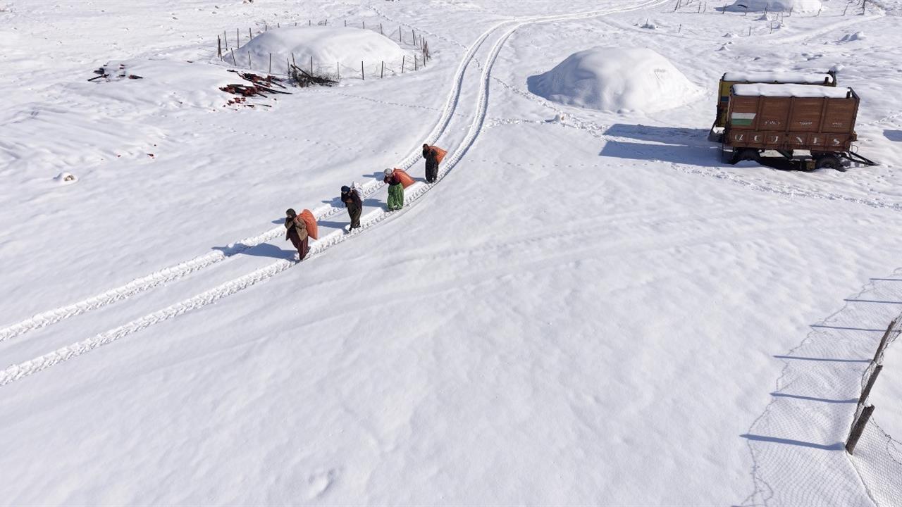 Sabahın erken saatlerinde işe koyulan kadınlar, sırtlarındaki ağır saman çuvalları ile metrelerce mesafe kat ediyor. Kar kalınlığının yürümeyi zorlaştırdığı arazide, hayvanlarına yem ulaştırmak için gösterdikleri çaba, bölgedeki yaşam şartlarının zorluğunu gözler önüne seriyor. Bu görüntüler, Anadolu kadınlarının fedakarlığını ve yaşam mücadelesini en iyi şekilde yansıtıyor.