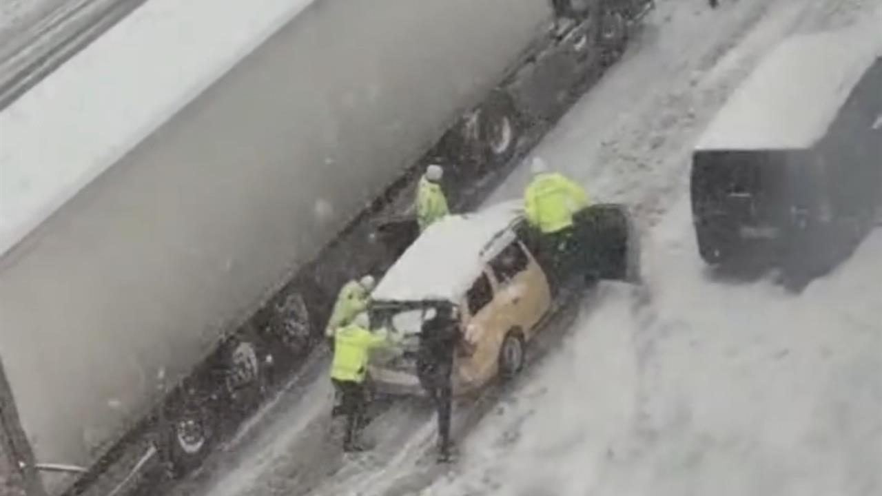 Mardin Merkez, dondurucu soğuk ve yoğun kar yağışının etkisi altında kalırken, bu zorlu koşullarda kardeşlik ve dayanışma örnekleri de ortaya çıkıyor. Vali Tuncay Akkoyun’un koordinasyonuyla yürütülen çalışmalar sahada tüm hızıyla sürerken, sosyal medyada paylaşılan bir dayanışma anı büyük ilgi gördü. Kar nedeniyle yolda mahsur kalan bir vatandaş, polis ekipleri tarafından kurtarılmaya çalışıldı. Üzerinde üniforma bulunan trafik polisleri, karla kaplı yolda mahsur kalan aracın arkasına geçerek vatandaşa yardım etti. Bu süreçte, bir süre sonra durumun değiştiği ve polis aracının karla kaplı rampada ilerlemekte zorlandığı gözlemlendi. Mardinliler, bu durumu görünce hiç tereddüt etmeden yardıma koşarak, polis aracını iterek güvenli bir bölgeye ulaştırdı. Dondurucu soğuğa rağmen, bu anlar Mardin’de içleri ısıtan kareler olarak kayıtlara geçti.