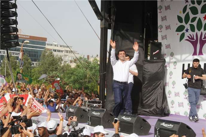 Demirtaş, ağır bedeller ödediklerini ancak zalimin karşısında gözlerini bile kırpmadıklarını ifade etti. "Çok şükür bugünlere geldik ve bütün Ortadoğu'nun umudu haline geldik. Ancak geldiğimiz nokta tam olarak başarı ya da zafer noktası değil. Resmi sonuçlar elimizde oluncaya kadar disiplinimizden taviz vermemeliyiz." şeklinde konuştu.