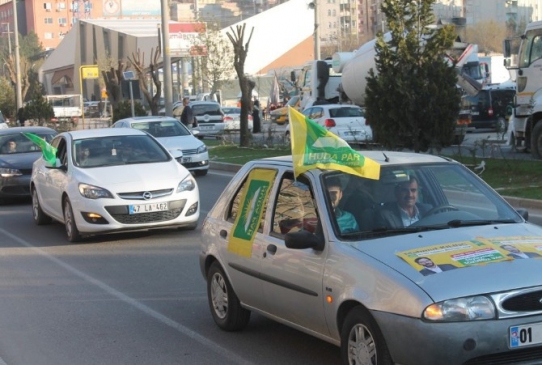 HÜDA PAR Mardin milletvekili adayı Mahmut Kılınç, memleketi Mardin'de araç konvoyuyla karşılandı. Konvoy, şehir merkezinde tur atarak HÜDA PAR il teşkilatı önüne geldi.