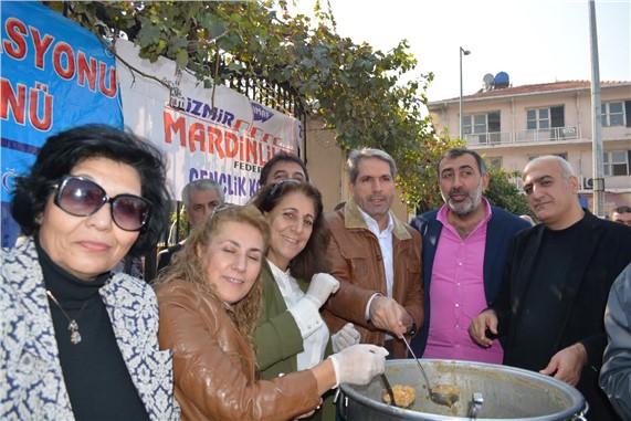 İZMİR - İzmir Mardinliler Federasyonu (İMAF) Basmane Çorakkapı Camii önünde aşure dağıttı. Vatandaşın yoğun ilgi gösterdiği etkinliğe İMAF Gençlik Kolları ve Kadın Kolları da katıldı.