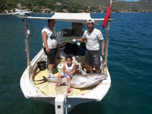 Muğla'nın Marmaris ilçesinde balıkçılık yapan Ahmet Çetin, Hisarönü körfezinde teknesiyle avlanırken oltasına büyük bir balığın takıldığını fark etti. Balığı çekmeye çalışırken, orkinos olduğunu anladı. Çetin, eşinin yardımıyla 60 kilogram ağırlığında ve 2,5 metre uzunluğundaki orkinosu zor bir şekilde kıyıya çıkardı. Daha önce de 250 kiloluk camgöz cinsi köpekbalığı yakaladığını ifade eden Çetin, orkinosu bölgedeki ünlü balık restoranlarından birine 2 bin liraya sattığını belirtti.
