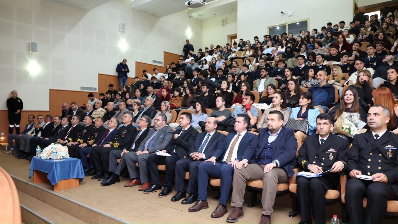Açılış konuşmasının ardından konferans sunumuna geçildi. Dz. Yb. Serkan Karslı tarafından gerçekleştirilen kapsamlı sunumda Mavi Vatan kavramının tarihsel arka planı; Barbaros Hayreddin Paşa'nın "Denizlere hakim olan cihana hakim olur" ve Gazi Mustafa Kemal Atatürk’ün "Denizciliği Türk’ün büyük milli ülküsü olarak düşünmeli ve onu az zamanda başarmalıyız" sözleri üzerinden katılımcılara aktarıldı. Türkiye’nin deniz yetki alanlarının dış sınırlarını kapsayan Mavi Vatan stratejisinin; ana kara, su yüzeyi, su kütlesi, suyun altındaki zemin ve bunların üzerindeki hava sahasından oluştuğu belirtildi.