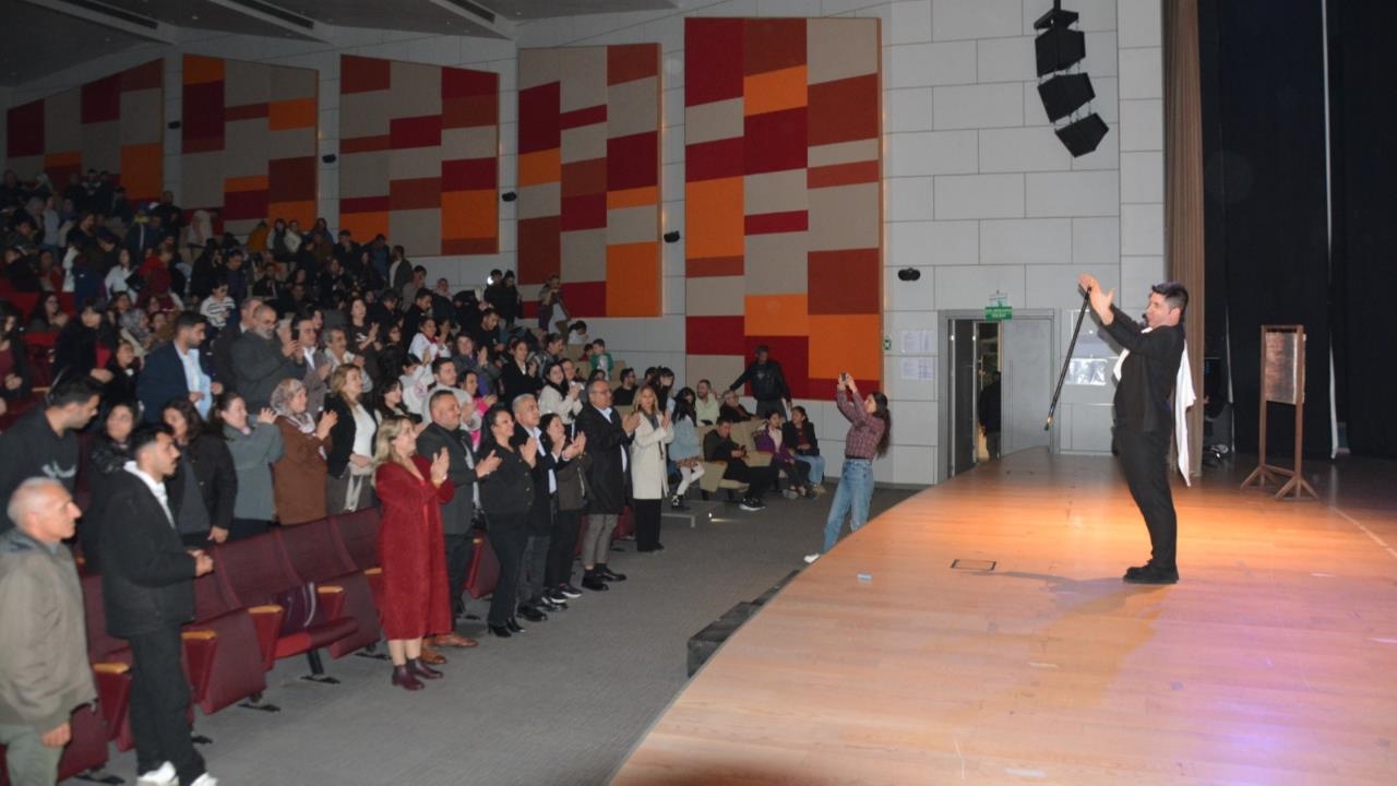 Büyükşehir Belediyesi Kültür ve Sosyal İşler Dairesi Başkanlığı bünyesinde sanat çalışmalarını sürdüren Şehir Tiyatrosu, birbirinden değerli kalemlerin eserlerini sahnelemeyi sürdürüyor. Ahmet Önel’in yazdığı, Şehir Tiyatrosu Genel Sanat Yönetmeni Ozan Erdönmez’in yönettiği ve Şehir Tiyatrosu’nun dev sanat ekibiyle hazırlanan “Eyvah! Nadir” isimli oyun, geleneksel Türk Tiyatrosu’nun en önemli unsurlarından biri olan meddahlık geleneğini çağdaş bir üslupla ele alıyor. Sanatçı Mehmet Naci İdişci’nin beğeni gören performansıyla izleyenleri farklı dönemlere götüren oyunda, pek çok değişik figür tek oyuncu tarafından canlandırılıyor. Tarsus Amerikan Koleji salonunda sahnelenen oyun 27 Ocak Salı günü (bugün) saat 20.00’de bir kez daha ücretsiz olarak tiyatroseverlere sunulacak. İlk seansı büyük ilgi gören ve dakikalarca ayakta alkışlanan oyunu CHP Tarsus İlçe Saymanı Hüseyin Uğur, İlçe Kadın Kolları Başkanı Figen Acıyiyen, muhtarlar, STK temsilcileri ve çok sayıda sanatsever izledi ve keyifli anlar yaşadılar.