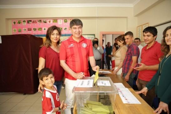 Antalya Büyükşehir Belediye Başkanı Menderes Türel, oyunu Döşemealtı Yeşilbayır İMKB Otelcilik ve Turizm Meslek Lisesi’nde kullanarak dikkat çekti. Şampiyon Antalyaspor’un formasıyla sandık başına giden Türel, “Demokrasi bayramı” olarak nitelendirdiği günün önemine vurgu yaptı.