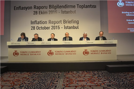 “Burada ham petrol fiyatları tahminini 2015 için 59 dolardan 54 dolara, 2016 için 63 dolardan 54 dolara çektik. Ayrıca ortalama ithalat fiyatlarının oranlarını 2015 ve 2016 için 1,9’ar puan aşağı çektik. Gıda fiyatlarında bir yenileme yapmadık. Sene sonu gıda enflasyonunun yüzde 8 olacağına ihtimal veriyoruz. Mali anlamda 2016-2018 Orta Vadeli Program’ı temel aldık. Gelirler ve giderler kaleminde milli gelire oranla bir miktar artış, ilerleyen senelerde daralma öngörülüyor. Buna bağlı olarak enflasyonda iyileşme kademeli olacak. Enflasyon tahminimiz yüzde 70 ihtimalle 2015 sonu için yüzde 7,4-8,4 aralığında olup orta nokta yüzde 7,9’dur. 2016 sonu için de yüzde 5-8 aralığında olup orta nokta yüzde 6,5’tir. Oranın 2017’de de yüzde 5 olacağını öngörüyoruz. 2015 sene sonu enflasyon tahmininde Enflasyon Raporu III’e göre yapılan yukarı yönlü yenilemenin 1,2 puanı üçüncü çeyrekte kur oynamalarının çekirdek enflasyonu arttırıcı rolünden ileri geliyor. İthalat fiyatlarında iyileşme enflasyon tahminine 0,2 puan aşağı yönlü etkide bulundu. Bu çerçevede Enflasyon Raporu III’te yüzde 6,9 olarak verilen 2015 sonu enflasyon tahmini 1 puan yukarı yönlü revize edildi.”