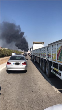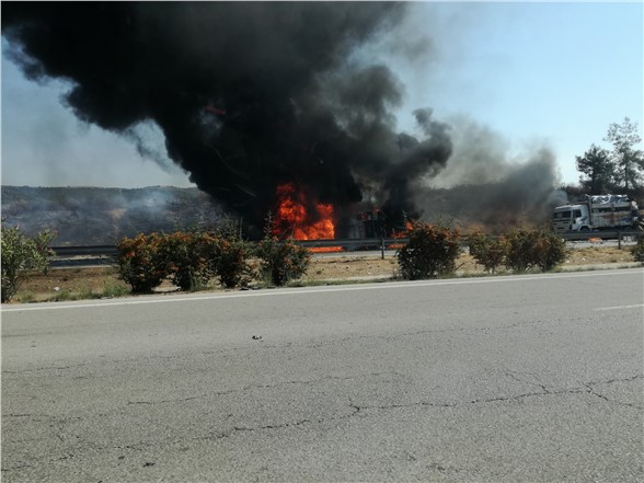 Tankerin yanmasıyla çıkan duman kilometrelerce uzaktan görülüyor.
