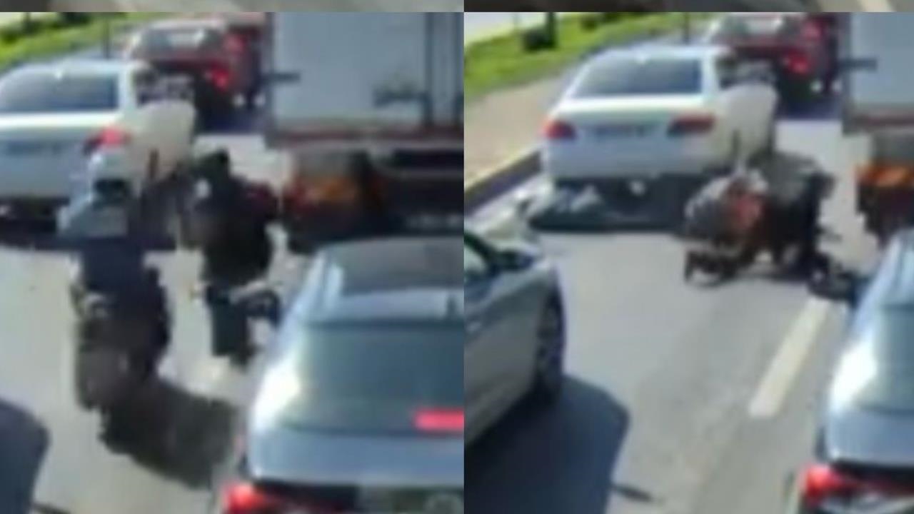 Olay anı, bir aracın içindeki kamera tarafından kaydedildi. Görüntülerde, trafiğin durduğu anda çocuğuyla birlikte karşıya geçmeye çalışan kadının, birdenbire araçların arasından gelen motosiklet tarafından çarptığı anlar net bir şekilde görünmekte. Çarpışmanın ardından çevredeki sürücülerin ve vatandaşların araçlarından inerek yaralılara yardım etmeye çalıştığı gözlemlendi. Yaralıların durumu hakkında henüz resmi bir açıklama yapılmadı.