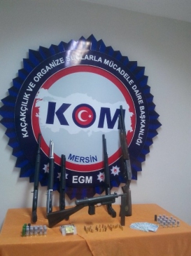 Mersin’de silah kaçakçılığına yönelik gerçekleştirilen operasyonda, çeşitli marka ve modelde 6 tüfek ile bu tüfeklere ait çok sayıda fişek bulundu. Mersin Emniyet Müdürlüğü, Kaçakçılık ve Organize Suçlarla Mücadele Şube Müdürlüğü ekiplerinin, merkez Akdeniz ilçesi Şevket Sümer Mahallesi’nde düzenlediği operasyonda, biri tam otomatik olmak üzere toplam 6 adet tüfek ele geçirildi. Ayrıca operasyonda 2 bin 610 TL nakit para da bulundu. Olayla ilgili olarak gözaltına alınan bir kişi adliyeye sevk edildi ve tutuklandı.