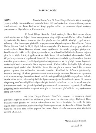 İŞTE MERSİN BAROSUNDAN YAPILAN AÇIKLAMA