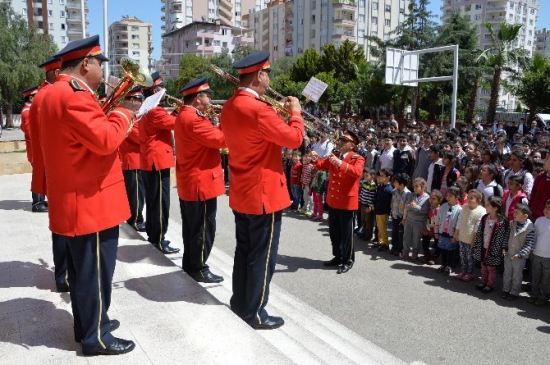 Mersin Büyükşehir Belediyesi Bando Takımı, Viranşehir 75. Yıl İlköğretim Okulu'nda düzenlenen etkinlikte minik öğrencilerle buluştu. Etkinlikte, bando takımı ve enstrümanlar tanıtıldı. Öğrenciler, bando eşliğinde İstiklal Marşı, Gençlik Marşı ve 10. Yıl Marşı gibi önemli milli marşları seslendirdi. Bu etkinlik, öğrencilerin ritim duygularını geliştirmeyi ve milli birlik ruhunu pekiştirmeyi amaçlıyor. 15 Haziran'a kadar sürecek proje kapsamında, bando takımı belirlenen okullara giderek öğrencilere bando ve marşlar hakkında bilgi verecek. Her hafta iki okula gidecek olan bando takımı, köy okullarını da ziyaret etmeyi planlıyor.