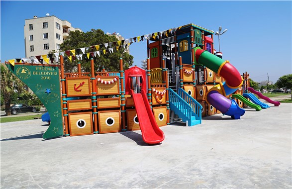 Erdemli’de farklı bir çocuk oyun parkı kuruldu. Erdemli sahil bandı üzerinde kurularak çocuklar tarafından kullanılmaya başlanan oyun parkı, gemiye benzediği için gemi park olarak hizmet veriyor. Erdemli’de ilk defa böyle bir parkın kullanılmaya başlandığını ifade eden Erdemli Belediye Başkanı Mükerrem Tollu, birçok konuda olduğu gibi bu konuda da ilklerin ve yeniliklerin kendi dönemlerinde gerçekleştirildiğini vurguladı. Kendilerinin belediyecilikte yeni bir soluk olarak hizmet vermeye anlayışı içerisinde olduklarının altını çizen Başkan Tollu, bugüne kadar birçok yeniliğin kendileri tarafından vatandaşlara armağan edildiğini kaydetti. Bundan sonra da bu anlayışın devam edeceğini söyleyen Belediye Başkanı Tollu, “amacımız devlet olarak vatandaşımızı mutlu etmektir. Bu ilkeden hareketle çalışıyoruz. Erdemli’de yaşayan hemşerilerimizin memnun olmaları, yapılan hizmetler neticesinde hayatlarının rahatlaması, çağdaş bir şehirde yaşamaları, ilçelerinden gurur duymaları için ve en mühimi de Allah rızası için bu çalışmaları yapıyoruz. Allah utandırmasın” dedi.