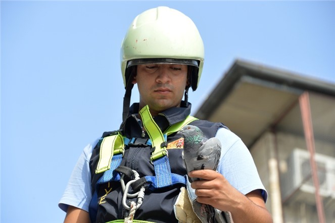 Anında ve etkili ilk müdahale ile sayısız hayvanı kurtaran konusunda uzman ekipler, son olarak takıldığı ağaçta ölümü bekleyen güvercini de hayata döndürerek Mersin genelinde 7 gün 24 saat yürüttüğü kurtarma görevine bir yenisini daha ekledi.