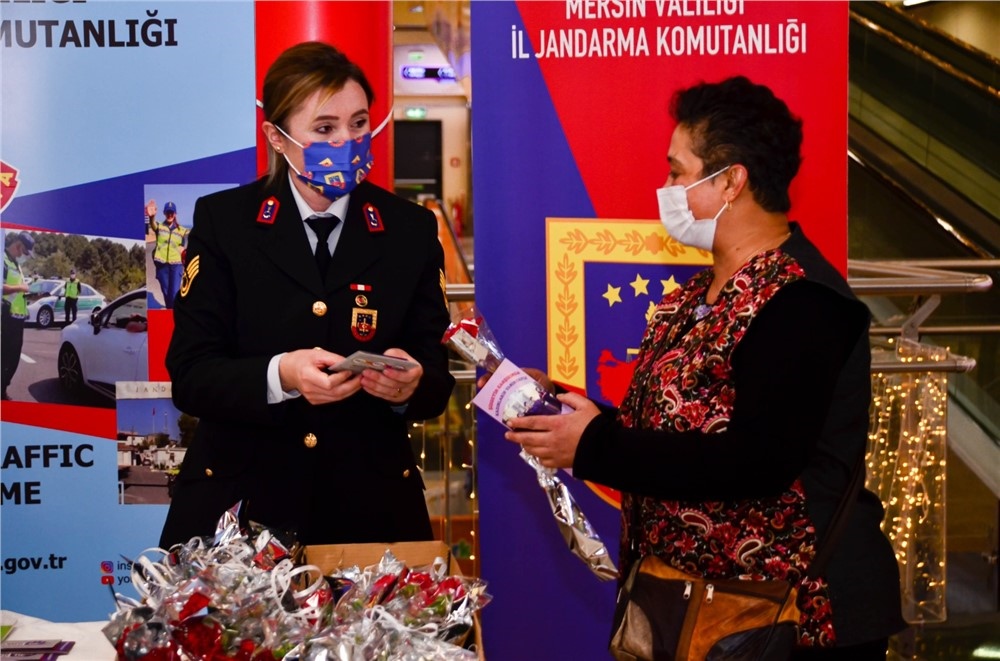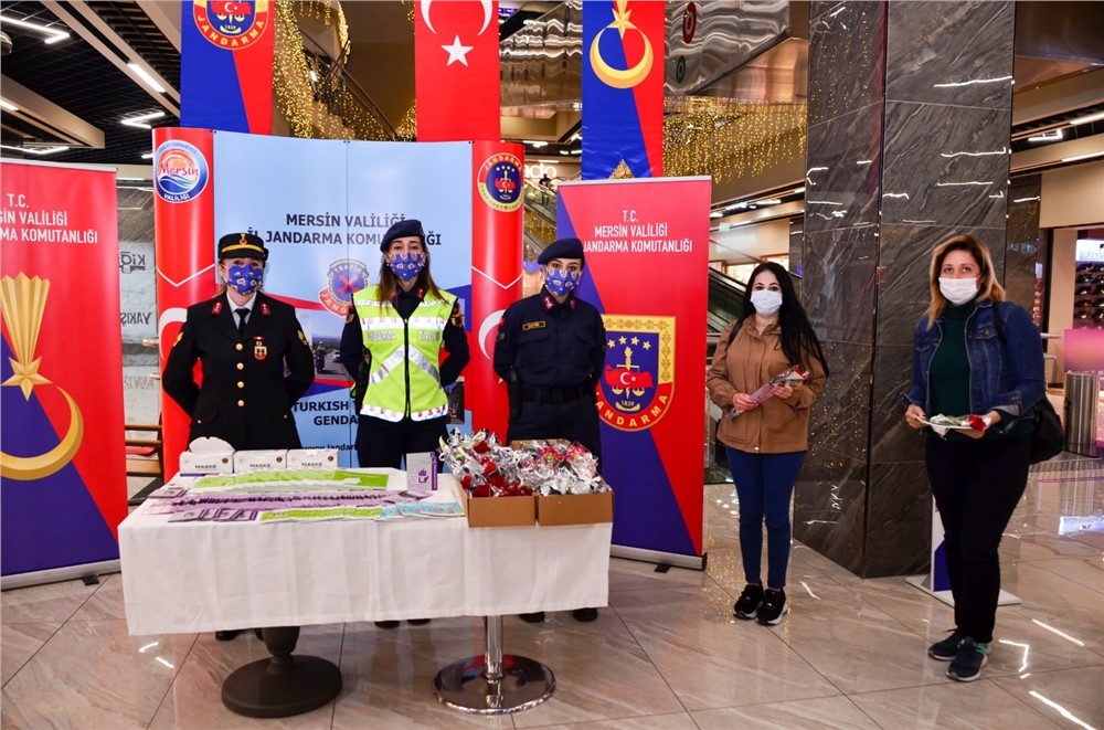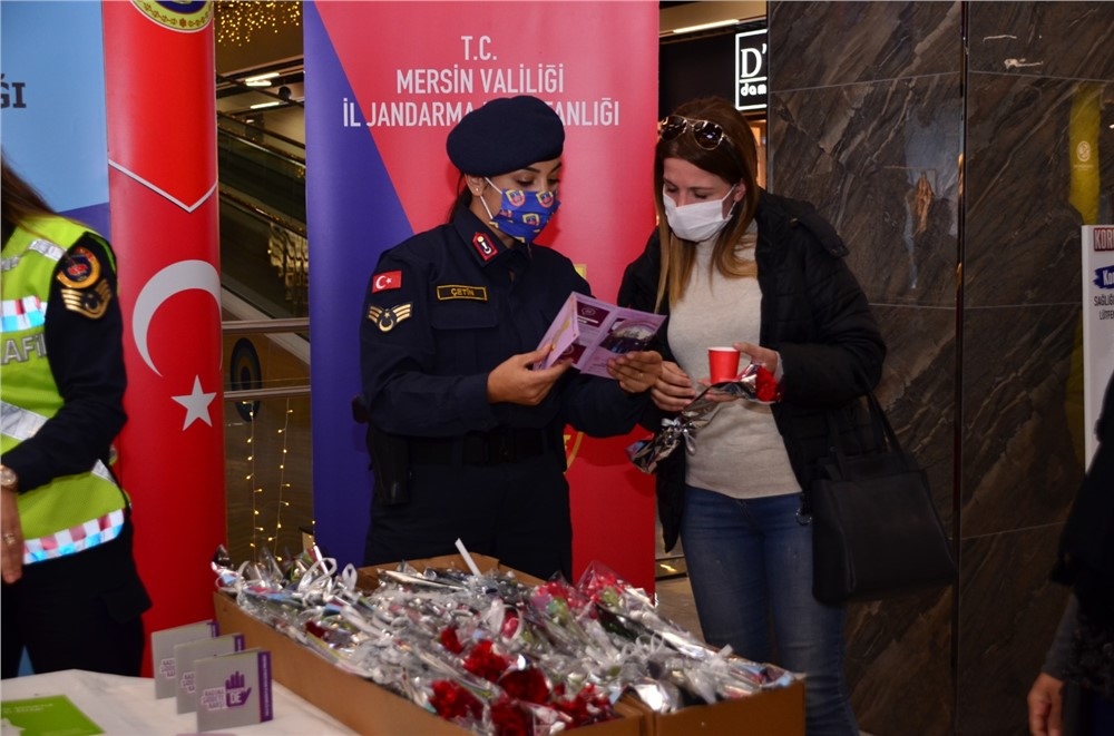 Mersin İl Jandarma Komutanlığı, Aile İçi Şiddetle Mücadele Çocuk ve Kadın Kısım Amirliğince “25 Kasım 2020 günü Kadına Yönelik Şiddete Karşı Uluslar Arası Mücadele Günü” dolayısıyla Mersin Sayapark AVM’de stant açıldı.