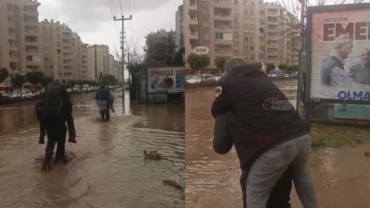 Mersin genelinde etkili olan sağanak yağış günlük yaşamı olumsuz etkiledi. Yağış nedeniyle cadde ve sokaklar göle dönerken trafik akışında aksamalar yaşandı. Olay Mersin Mezitli Menderes Mahallesi sınırları içerisindeki Ayşe Arslan Camii önünde meydana geldi. 11-14 öğle saatlerinde Cuma namazı sonrası camiden çıkan cemaat, yolun suyla kaplanması nedeniyle cami avlusunda ve kaldırımda mahsur kaldı. Bölgede bulunan bir teslimat firmasına bağlı motokuryeler, dağıtım yaptıkları sırada durumu fark ederek yardıma koştu. Kuryeler su seviyesinin yükseldiği caddede yürümekte güçlük çeken yaşlı vatandaşları sırtlarına alarak güvenli bölgeye taşıdı. O anlar çevredeki vatandaşların cep telefonu kameralarına yansıdı. Görüntülerde sel sularının cami çevresini tamamen kapladığı ve araçların ilerlemekte güçlük çektiği görüldü.