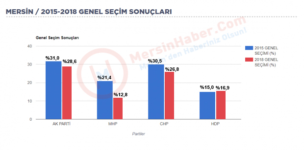 Milliyetçi Hareket Partisi 1 kasım 2015 seçimlerinde göre Mersin’de oy sayısı açısında ciddi bir düşüş yaşadı. 24 Haziran seçimlerinde yurtdışı oylarıyla MHP kentte 2 vekil çıkarttı. MHP bir önceki seçimlerde kent genelinde 220 bin oy alırken 2018 seçimlerinde ise 139 bin oy aldı.