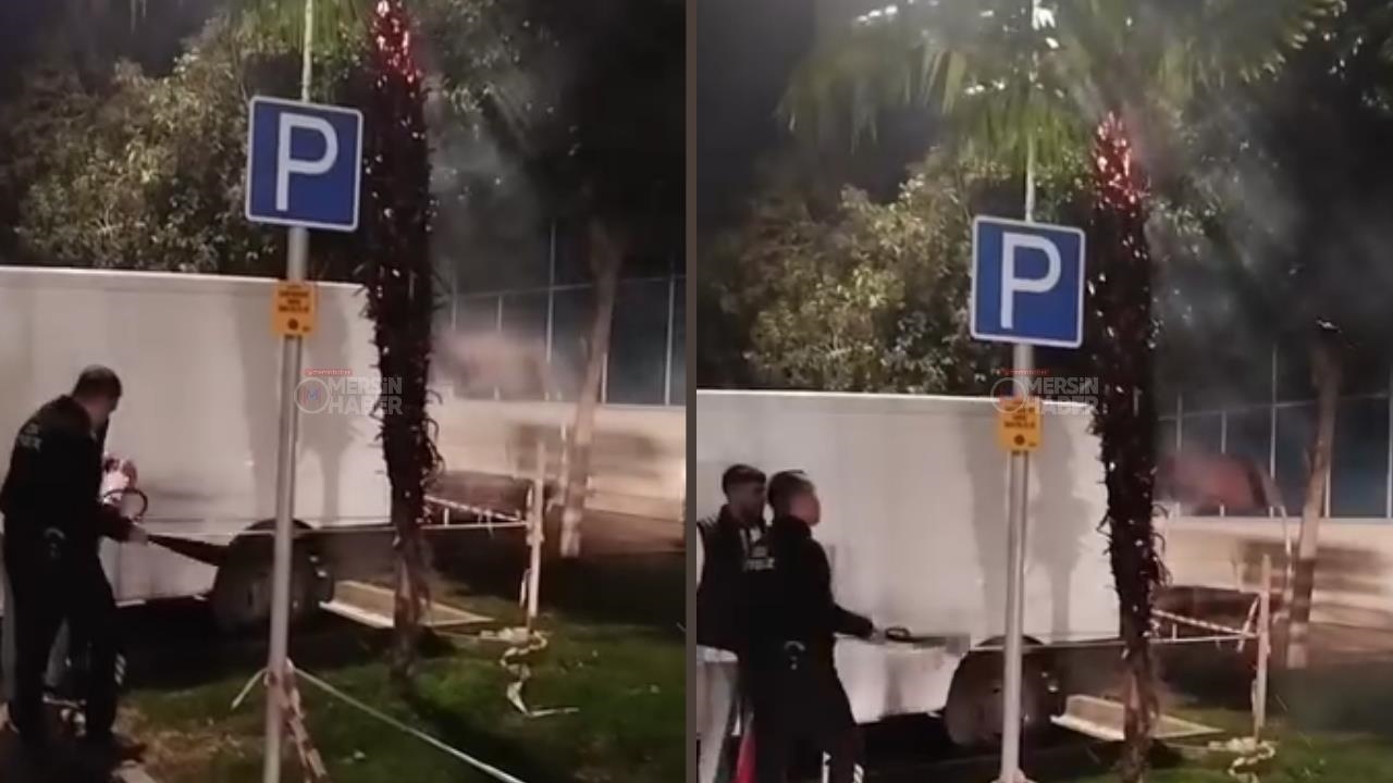 Alevlerin palmiye ağacının gövdesini sarması üzerine, hastane çalışanları durumu fark ederek hızla harekete geçti. Yangın bölgesine en yakın noktadaki yangın söndürme tüplerini alan personel, itfaiye ekiplerinin gelmesini beklemeden sarsıntıya müdahale etti.