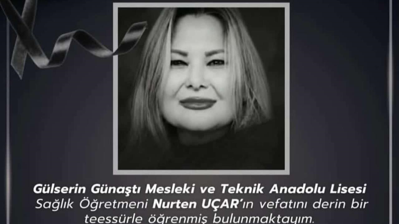 Mersin Tarsus ilçesinde eğitim camiasını üzen bir vefat haberi geldi. Gülserin Günaştı Mesleki ve Teknik Anadolu Lisesi kadrosunda görev yapan Sağlık Öğretmeni Nurten Uçar hayatını kaybetti. Uçar'ın vefatı meslektaşları, öğrencileri ve ilçe eğitim camiasında üzüntü yarattı. Tarsus İlçe Milli Eğitim Müdürü Mustafa Anteplioğlu, vefat haberinin ardından resmi bir taziye mesajı yayımladı. Anteplioğlu yayımladığı mesajda öğretmenin vefatını derin bir teessürle öğrendiğini ifade etti. İlçe Milli Eğitim Müdürü açıklamasında merhumeye Allah'tan rahmet dilerken, kederli ailesine, yakınlarına ve tüm eğitim camiasına sabır ve başsağlığı temennisinde bulundu. Mesajda mekanı cennet olsun ifadelerine yer verildi. Vefat eden öğretmenin cenaze programına ilişkin detaylar ve ölüm sebebine dair bilgiler henüz paylaşılmadı.