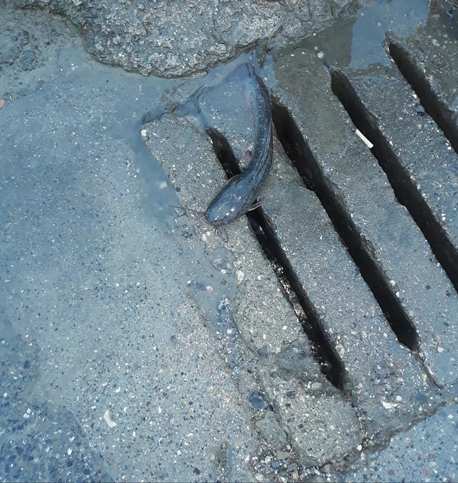 Tarsus Berdan Nehrinin yanı başında bulunan Şahin Mahallesinde çekilen suların arından kanalizasyonun ızgaralarının üstünden sokağa çıkan balıklar vatandaşları şok etti.