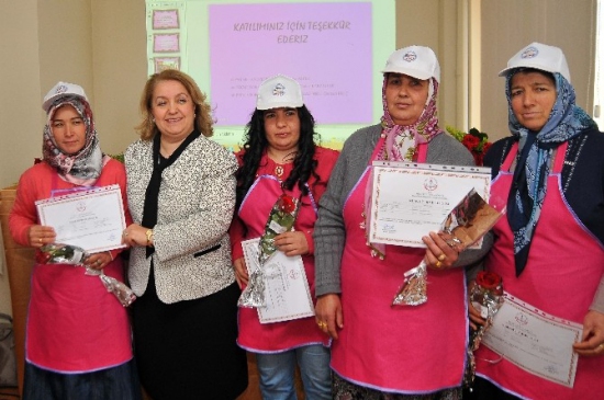 Mersin Valisi Özdemir Çakacak’ın eşi Kevser Çakacak, Fındıkpınarı Üretim Atölyesi’nde gerçekleştirilen kurslara katılan kadın kursiyerlerle bir araya gelerek sertifikalarını sundu. Mersin Valiliği Sosyal Destek Programı çerçevesinde, Yenişehir İlçe Milli Eğitim Müdürlüğü tarafından yürütülen kurslar kapsamında toplam 40 kadına Sabun Üretim Kursu, Seramik Hediyelik Eşya Kursu ve Girişimcilik Kursu verildi. Sertifika törenine, Mezitli Kaymakamı Nazım Madenoğlu, İlçe Milli Eğitim Müdürü Dursun Kılıç ve SODES Birim Koordinatörü Prof. Dr. Nalan Yetim de katıldı. Törende, kursiyerlerden Hatice Yıldız, aldıkları eğitimlerin aile bütçesine katkıda bulunduğunu belirterek, destek verenlere teşekkür etti. Kaymakam Madenoğlu, Kevser Çakacak’ın projeye olan desteğini vurgulayarak, kadınların kurs sonrası öğrendiklerini kazanca dönüştüreceğine inandığını ifade etti. Kevser Çakacak ise, kadınların topluma faydalı bireyler olmasının önemine değinerek, eğitimlerin aile bütçesine katkı sağlaması gerektiğini belirtti. Konuşmaların ardından sertifikalar kursiyerlere sunuldu ve kursta üretilen ürünlerin sergisi gezildi.