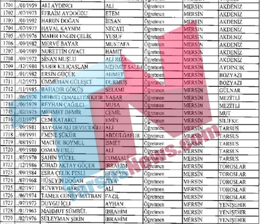 Kararnameye göre terör ögütleriyle bağlantısı bulunduğu gerekçesiyle Mersin'de görev yapan 29 öğretmen ihraç edildi. İŞTE O ÖĞRETMENLER...