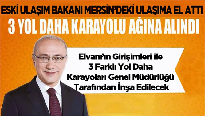 Elvan'ın girişimleri ile 3 farklı yolun daha Karayolları Genel Müdürlüğü tarafından inşa edileceğini ifade edildiği açıklamada, şunlar kaydedildi: