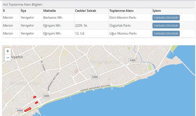 ACİL TOPLANMA ALANI BİLGİSİ SORGULAMA: