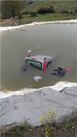 Alınan bilgilere göre, Mersin'de yaşanan şiddetli yağıştan dolayı direksiyon hakimiyetini kaybeden aracın sürücüsü, yol kenarındaki yapay gölete uçtu. Sürücü kendi imkanlarıyla araçtan çıkarken, araç tamamen sulara gömüldü.