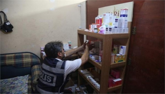 İşyeri sahipleri gözaltına alındı, ilaçlara sağlık görevlilerince el konuldu.