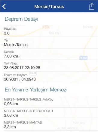 Depremin Merkez üssünün Tarsus olduğu ve yerin 7 km altında gerçekleştiği bildirildi.