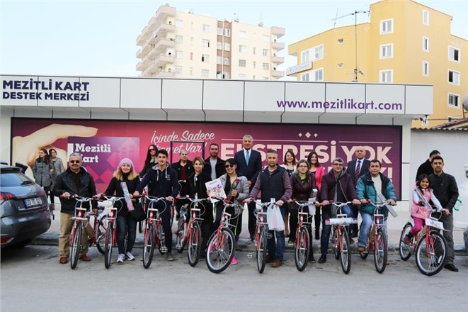 Gelecek nesillere daha yaşanabilir sağlıklı bir çevre bırakmak istediklerini ifade eden Mezitli Belediye Başkanı Neşet Tarhan, bunun bir yolunun da ilçede bisiklet kullanımını artırmak olduğunu ifade etti. Bu kapsamda vatandaşları bisiklet kullanmaya teşvik amacıyla çalışmalar yaptıkları bilgisini veren Başkan Tarhan, “Mezitli’ye 1360 metre bisiklet yolu kazandırdık. Bu çalışmamızdan dolayı Sağlık Bakanlığı ilk etapta 350 bisiklet verdi. Bunu önümüzde ki süreçte 850’ye çıkaracaklarını söylediler. Biz de 10 bin 800’e ulaşan Mezitli Kart üyelerimiz arasında başvuranlara kura ile dağıtmaya karar verdik. Çok yoğun bir ilgi var. İlk etapta 14 Şubat Sevgililer Günü nedeniyle 14 bisiklet dağıtımı yaptık. Binin üzerinde başvuru arasında kura ile şanlı olan 14 kişi bisikletini aldı. Daha sonra Mezitli Kart aracılığı ile diğer bisikletleri de dağıtacağız. Bugün bana bisiklet çıkmadı diye üzülmesin kimse. Yarınlarda bu kez size de çıkabilir” diye konuştu.
