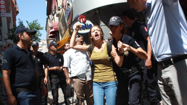 Bu sırada yaşanan arbede sonrası asılan pankart çalışanlar ve güvenlik görevlileri tarafından indirildi. Daha sonra olay yerine gelen polis ekipleri binadan ayrılmak isteyen kadınlara izin vermedi. Olay yerine Çevik Kuvvet ekiplerinin sevk edilmesi üzerine kadınlar gözaltına alınarak Güvenlik Şube Müdürlüğü'ne götürüldü. Polisler pankarta el koydu.