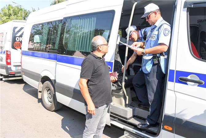 Denetimlerde, araçların evrak kontrolü, ruhsatta belirtilen sayıya göre öğrenci taşıyıp taşımadıkları gibi konular öncelikli olarak ele alınıyor. Ayrıca, araçların emniyet kemeri, yangın söndürme tüpleri, öğrenci rehberi, güzergah izin belgesi, sabit olmayan pencerelerin demir kafes sistemi kontrolü gibi koşulları taşıyıp taşımadığı da titizlikle inceleniyor.