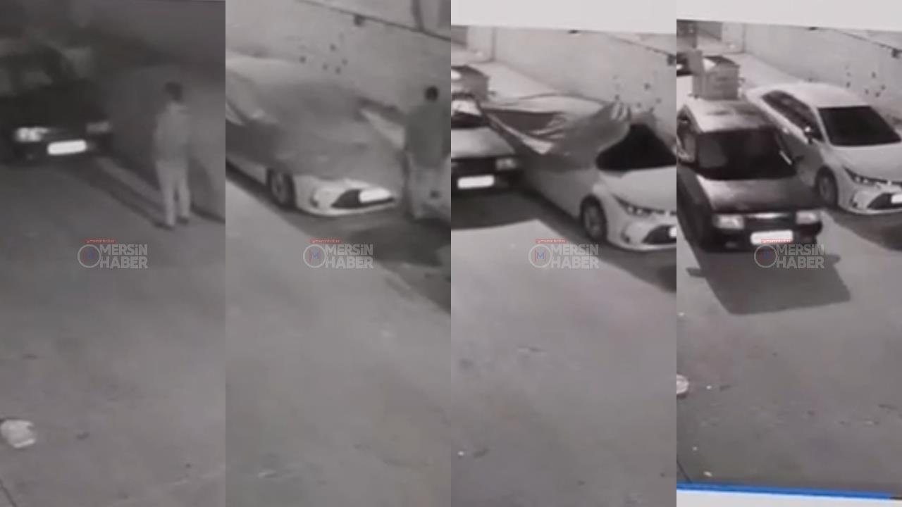Olay, gece saat 02.00 sularında Akdeniz ilçesine bağlı Mesudiye Mahallesi’nde meydana geldi. Edinilen bilgilere göre, kimliği henüz belirlenemeyen bir şahıs, kendi otomobiliyle sokak üzerinde gözüne kestirdiği bir aracın yanına yaklaştı.