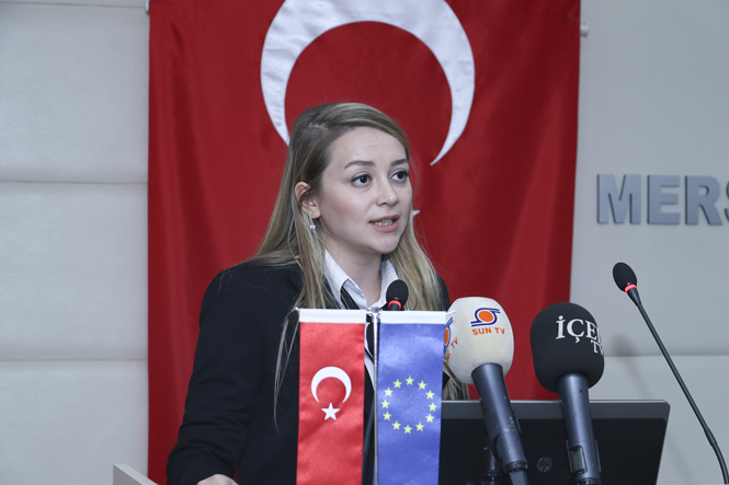 Toplantıda Mersin Üniversitesi Öğretim Üyesi Yrd. Doç. Dr. Ebru Arıcıoğlu “Ekonomik Panorama” başlıklı bir sunum gerçekleştirdi. İlk olarak dünya ve Türkiye ekonomisi hakkında genel bir bilgilendirme yapan Arıcıoğlu ardından Türkiye genelindeki işgücü piyasası ve geçici koruma altındaki Suriye vatandaşlarının işgücü piyasasındaki yerini değerlendirdi. Mersin özelinde de perspektif çizen Arıcıoğlu, Arıcıoğlu, 2017 yılında Mersin’deki işyeri sayısının Türkiye genelinden yüksek olduğunu ve istihdam rakamı ile Türkiye’nin ilk 10 ili arasında yer aldığını anlattı. Mersin’de öne çıkan sektörler hakkında bilgi veren Arıcıoğlu, bu sektörleri “”Gıda ve içecek, ağaç ürünleri, kimyasallar, metalik olmayan mineral ürünlerin imalatı” olarak sıraladı. Mersin’in potansiyelinin lojistik ve tarıma dayalı gıda sektörleri olduğunu da vurgulayan Arıcıoğlu, kalifiye işgücü ile üretimdeki verimin artacağına dikkat çekti.