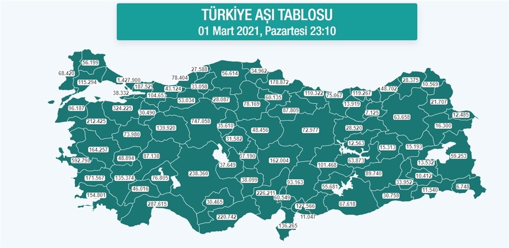 İstanbul toplam aşı:1.427.900 (Birinci Doz: 1.099.842, İkinci Doz:328.058)