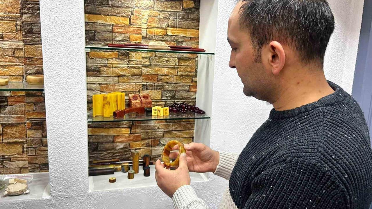 Koyuncu, dede yadigarı tespihin merakıyla bu işe adım attığını belirterek, "Çalıştığım kurumda bir arkadaşın tespih ustası olduğunu öğrendim. Tespihle ilgili sorular sordum ve bana bir tespih yapmasını istedim" şeklinde ifade etti. Arkadaşının daveti üzerine tespih yapmaya başladığını ve yıllar içinde çıraklık yaptıktan sonra ustalık seviyesine geldiğini vurguladı. Şu anki atölyesine girmediği günlerde bile 5-10 dakika uğrayarak tozunu almak istediğini dile getirdi. Koyuncu, bu işi 7-8 yıldır ustalıkla sürdürdüğünü belirtti.