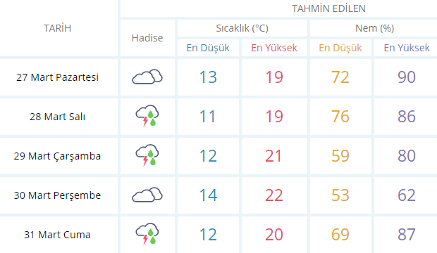 Meteorolojiden alınan son tahminler şöyle: