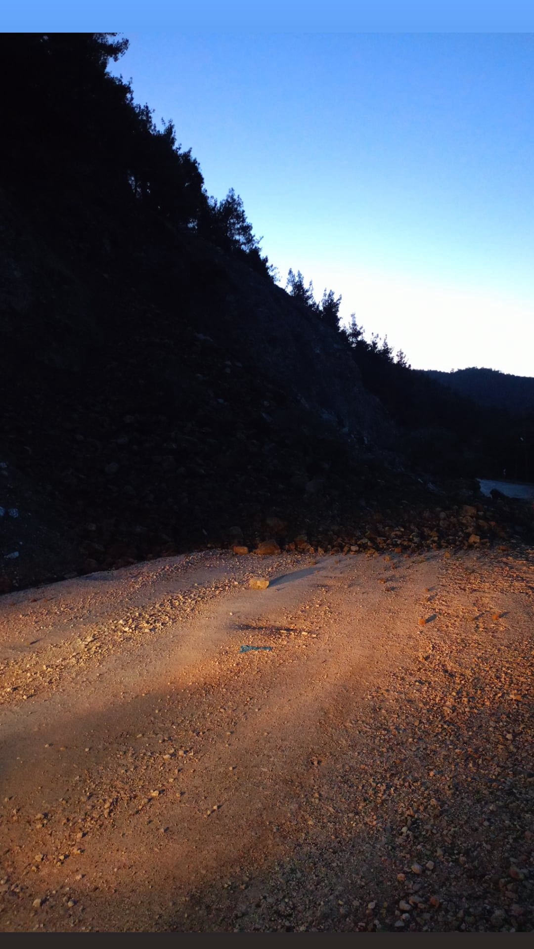 Yağışların veya zemin gevşemesinin tetiklediği tahmin edilen toprak kaymasında, devasa kaya parçaları ve toprak yığını yolu tamamen kapattı.