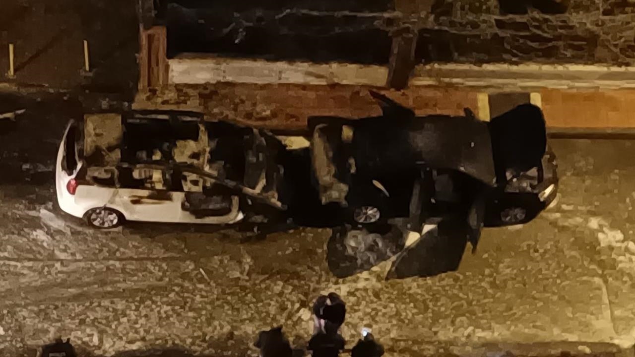 Kısa sürede büyüyen ve tüm aracı saran alevler, rüzgarın da etkisiyle hemen ön tarafta park halindeki diğer otomobile sirayet etti. Sokaktaki patlama sesleri ve alevleri gören mahalle sakinleri durumu hemen itfaiye ekiplerine bildirdi.