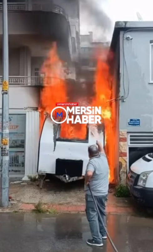 Kısa sürede bölgeye ulaşan Mersin Büyükşehir Belediyesi İtfaiye ekipleri, yangına müdahale ederek alevlerin bitişikteki konuta zarar vermesini engelledi. Yangın tamamen söndürülürken, karavan yangın sonrası kullanılamaz hale gelerek demir yığınına döndü.