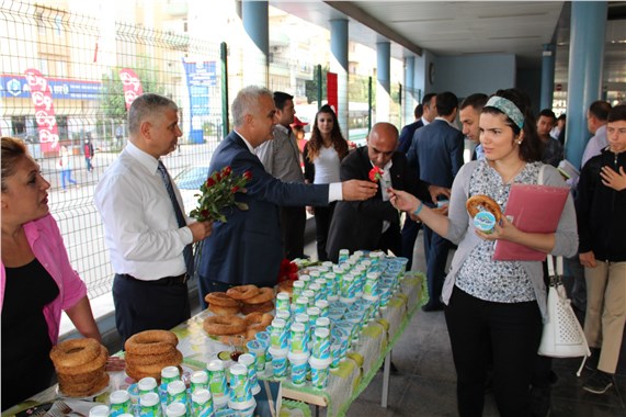 ADANA - Milliyetçi Hareket Partisi (MHP) Adana İl Başkanı Yusuf Baş, TBMM İdare Amiri Adana Milletvekili Seyfettin Yılmaz, sabah metro ile işe giden vatandaşları çiçeklerle karşıladı ve simit-ayran ikram etti.