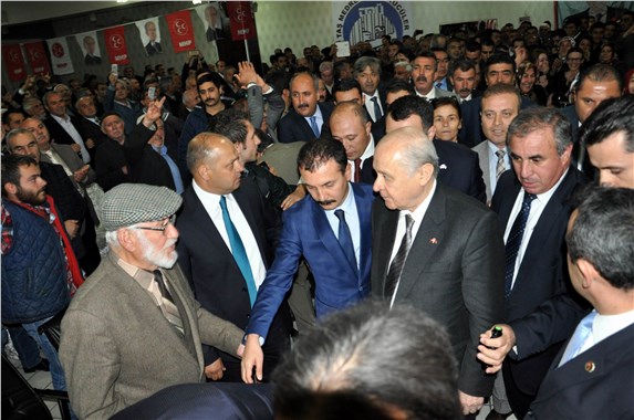 MHP’nin hayırlarının millet için hayırlı olduğunu kaydeden Bahçeli, şöyle konuştu: “Türkiye’nin bölünmesine evet diyorsanız biz hayır diyoruz. 17-25 Aralık hırsızlığa, yolsuzluğa evet diyorsanız, biz hayır diyoruz. Çözüm sürecine evet diyorsanız biz hayır diyoruz. Cumhurbaşkanının Çankaya Köşkü yerine kaçak sarayda oturmasına siz hayır diyorsanız biz evet diyoruz. Ama ille de kaçak sarayda oturacak diyorsanız biz hayır diyoruz. Bizim hayırlarımız milletimiz için hayırlı olandır. Tüm bunların altında yatan AK Parti’nin herhangi bir şart altında bir başka partiyle koalisyon kurup hükümet olması halinde kendilerinden bazı hesapların, bazı alınan kararların, yolsuzlukların hesabı sorulacak, yüzleşilecek korkusudur. Bu korku Recep Tayyip Erdoğan’ı sardığı için seçim yapmayın da ne yaparsanız yapın, tekrar milletin huzuruna gidelim 400 milletvekili isteriz, tek başımıza iktidar oluruz hevesidir. Türkiye bu yönüyle kilitlenmiştir. Çıkış yolu millet iradesi olmuştur. 1 Kasım’da, kilitlenen Türkiye’yi millet iradesi açacak. Önümüzdeki günlerin önemi buradan geliyor 1 Kasım seçimleri bu yönüyle önemlidir. Birinci görevimiz sandığa gitmektir. İkinci görevimiz oyumuzu mutlaka ve mutlaka gönlünden geçen partiye rahatlıkla verebileceği güvenliğin sağlanmasıdır. Üçüncü görevimiz Türkiye’nin bu genel gidişatına karşı MHP’nin duruşunu, kararlılığını, samimiyetini ülke yönetimine yönlendirebilecek siyasi başarının elde edilmesidir. Tek başına iktidar olmayı hedefliyoruz. Bu hedefimizden vazgeçmeyeceğiz. Bu hedefe hiçbir parti ulaşamaz ise kaygılanma aziz milletim, 4 şartı kim kabul ediyorsa HDP dışında hükümet olmaya, elimizi taşın altına, gövdemizi taşın altına koymaya hazırız. 1 Kasım seçimleri inşallah hayırlara vesile olur. MHP de koalisyon kurma şartlarına da hazır haldedir. Ve bunu da başarmak mecburiyetindeyiz.”