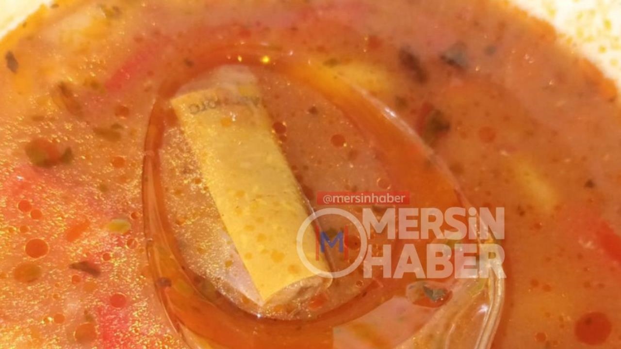Siparişi gelen ve çorbasını içmeye başlayan vatandaş, kaşığına gelen yabancı maddeyi fark edince neye uğradığını şaşırdı.