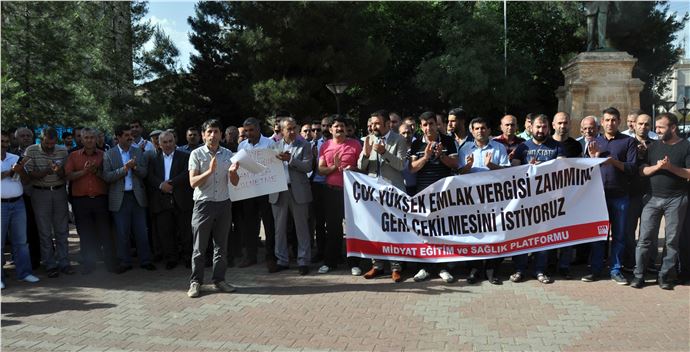 Mardin'in Midyat ilçesinde, Sivil Toplum Kuruluşları (STK'lar) yüksek emlak, çöp ve tabela vergilerini eleştirerek, Midyat Belediyesi'ne tepki gösterdi. Mahalle muhtarları ve vatandaşlarla birlikte yapılan basın açıklamasında, STK'lar emlak vergisi zammının geri çekilmesi gerektiğini vurguladı. Açıklamayı Rıfat Direkçi yaptı. Direkçi, "Midyat Belediyesi'nin emlak vergisi zammını çok yüksek buluyoruz. Bu zammın en kısa zamanda geri çekilmesini istiyoruz. Enflasyon oranının yüzde 7 olduğu bir dönemde yüzde 800 oranında yapılan bir vergi zammı kabul edilemez" dedi.